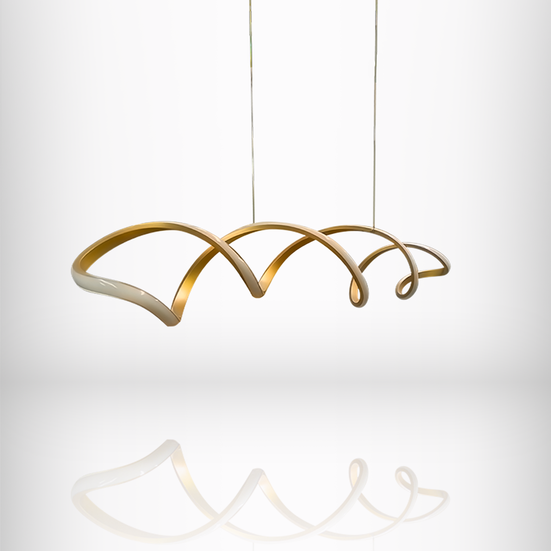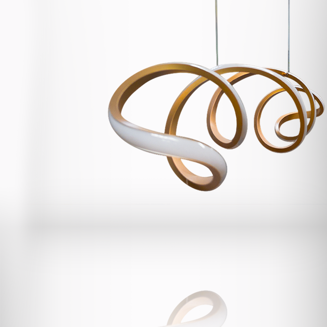 La lámpara colgante Fulgoria es una pieza de iluminación decorativa que fusiona arte y funcionalidad en un diseño elegante y contemporáneo. Su estructura en espiral con acabado dorado se complementa con un difusor de luz blanca, generando una presencia escultural que transforma cualquier ambiente.