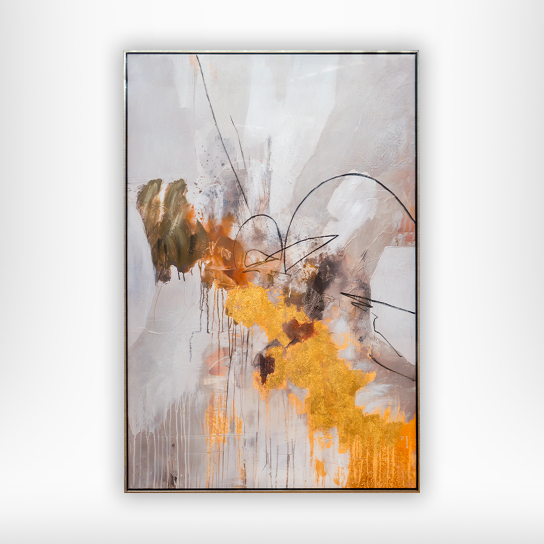 El Marco Velo Fino es una pieza de arte abstracto que combina texturas suaves y trazos definidos en una paleta de colores cálidos con acentos dorados. Su formato vertical lo hace perfecto para salas, oficinas o habitaciones que buscan un punto focal moderno y sofisticado. Fabricado con materiales de alta calidad para asegurar durabilidad y estilo.